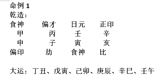 此例:癸水生于仲夏,又逢午时,财官太旺。喜其日元得地,更妙年干劫坐星有气,尤羡五行无木,则水不泄而火无助,壬水可用。且运走水得地,遗绪不丰,自创四五十万,一妻四妾八子。