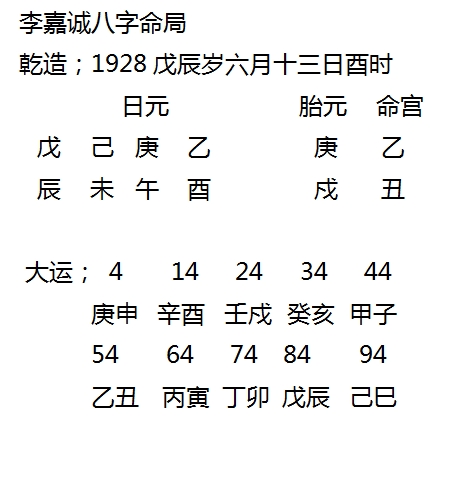 下面关于李嘉诚命运未来的预测是在2018年9月的第二次发表的文章。可参阅《用四柱八字预测“中国首富”还能活多久?》一文。
